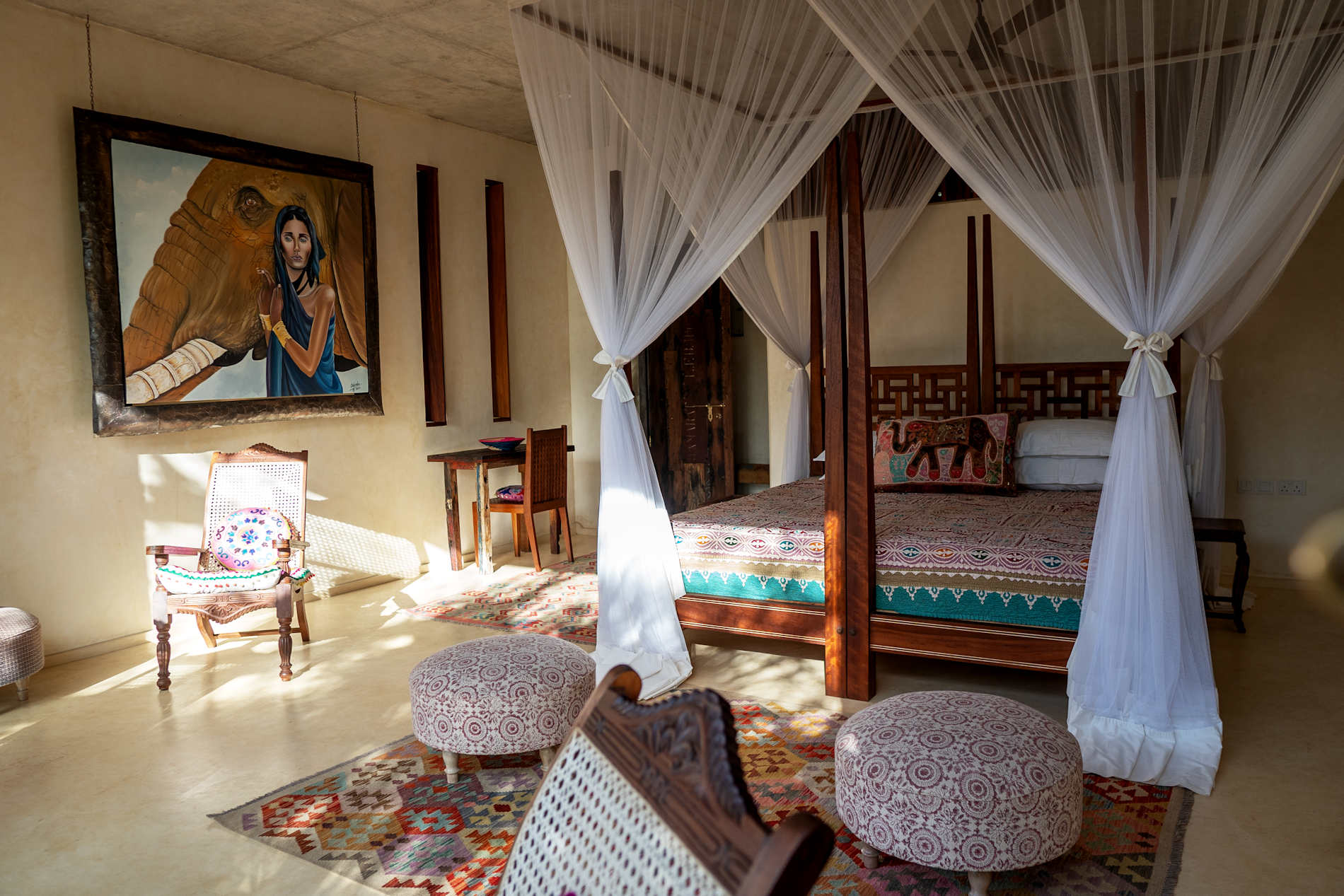 Die Einrichtung spiegelt die Natur der Umgebung wider, mit alten Swahili-Texturen und -Formen. In Kombination mit modernem Afro-Chic-Design und herzlichem Service erleben die Gäste hier Barfuß-Luxus vom Feinsten. Der gesamte Komplex ist auf das glitzernde türkisfarbene Wasser des Indischen Ozeans ausgerichtet.