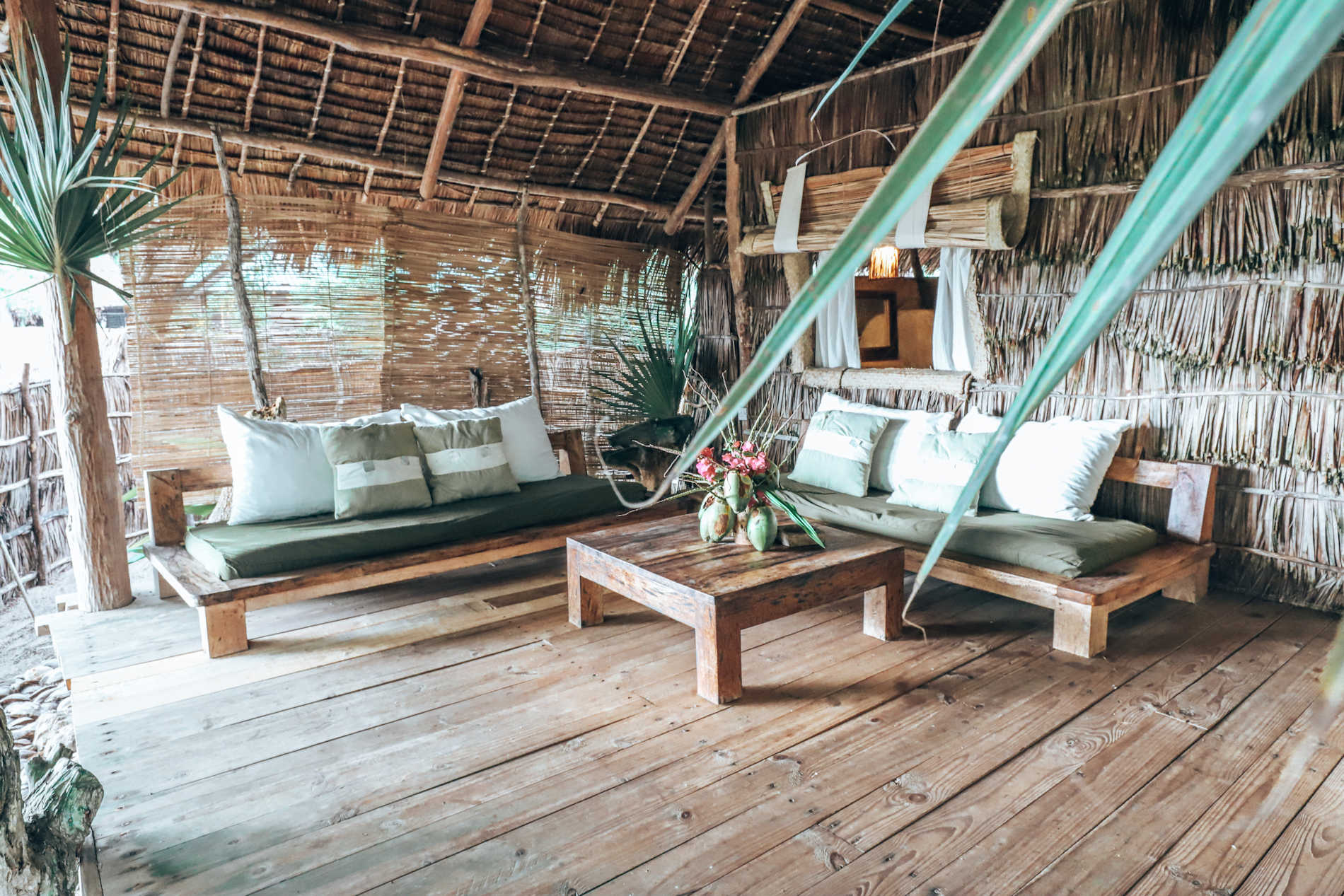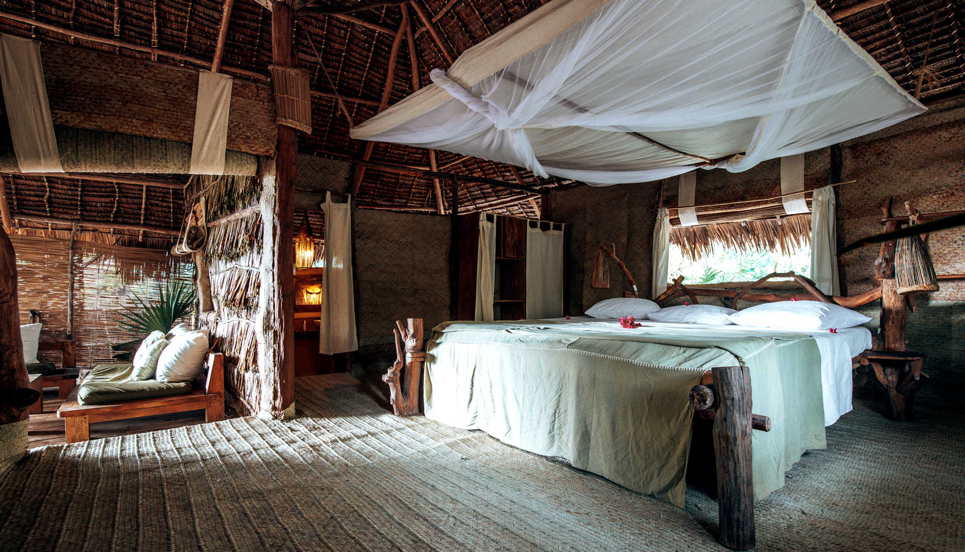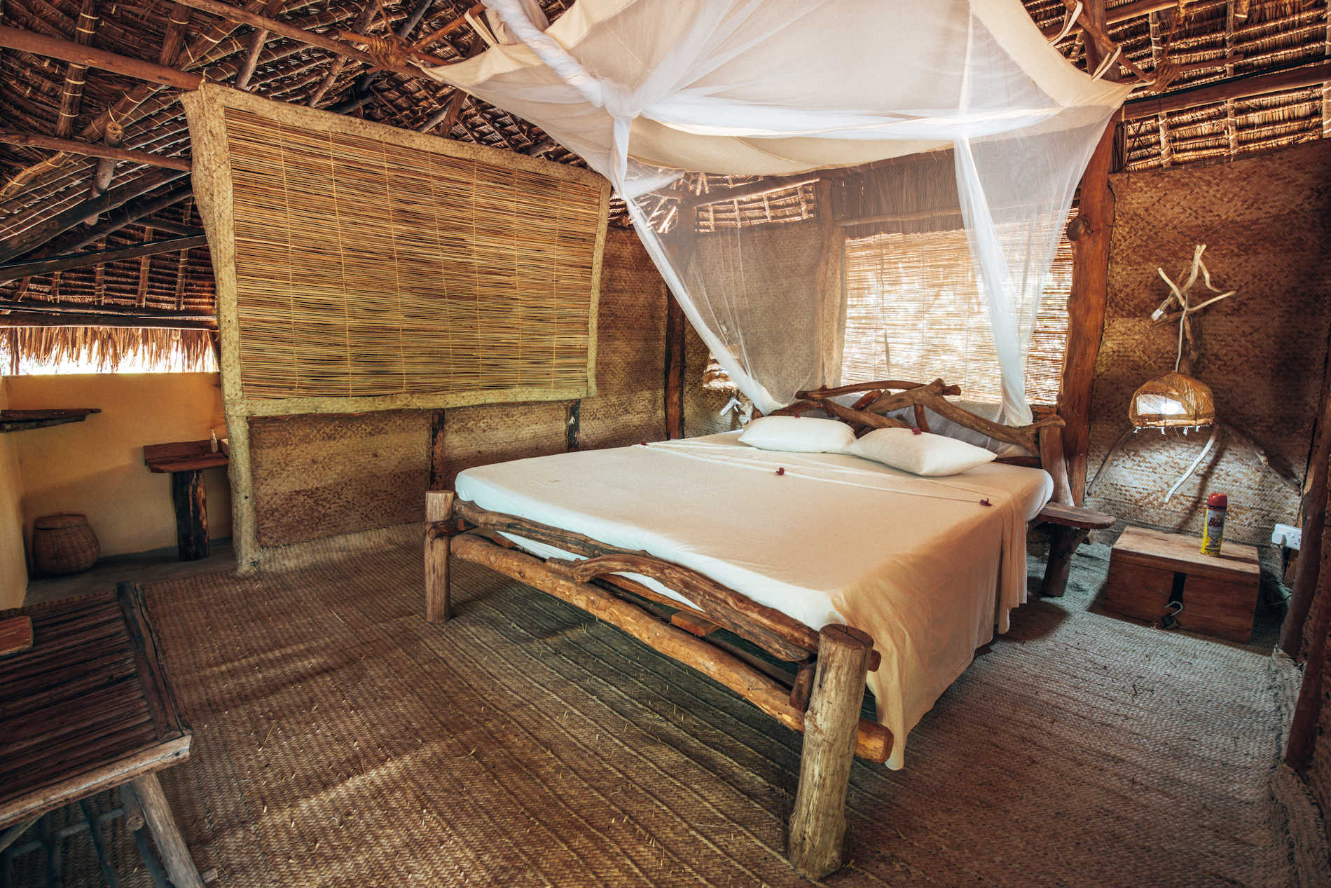 Die zwei Kajama Bandas liegen weiter hinten auf dem Grundstück, versteckt zwischen üppigen Doum-Palmen für Privatsphäre und vollständiges Eintauchen in die Natur. Sie sind eine wirklich perfekte Mischung aus chillig und rustikal und sind eine tolle Option für Familien, die ihre Kinder in ihrem eigenen Zimmer unterbringen möchten. Diese Bandas sind lässig und gemütlich, sie sind auf Stelzen gebaut für eine zusätzliche Brise und es wurden nur natürliche Materialien verwendet. Sie bieten alles, was der strandbegeisterte Reisende braucht: ein Doppelbett mit Moskitonetz, eine Veranda mit zwei Stühlen und jedes Zimmer verfügt über ein eigenes Bad en-suite.