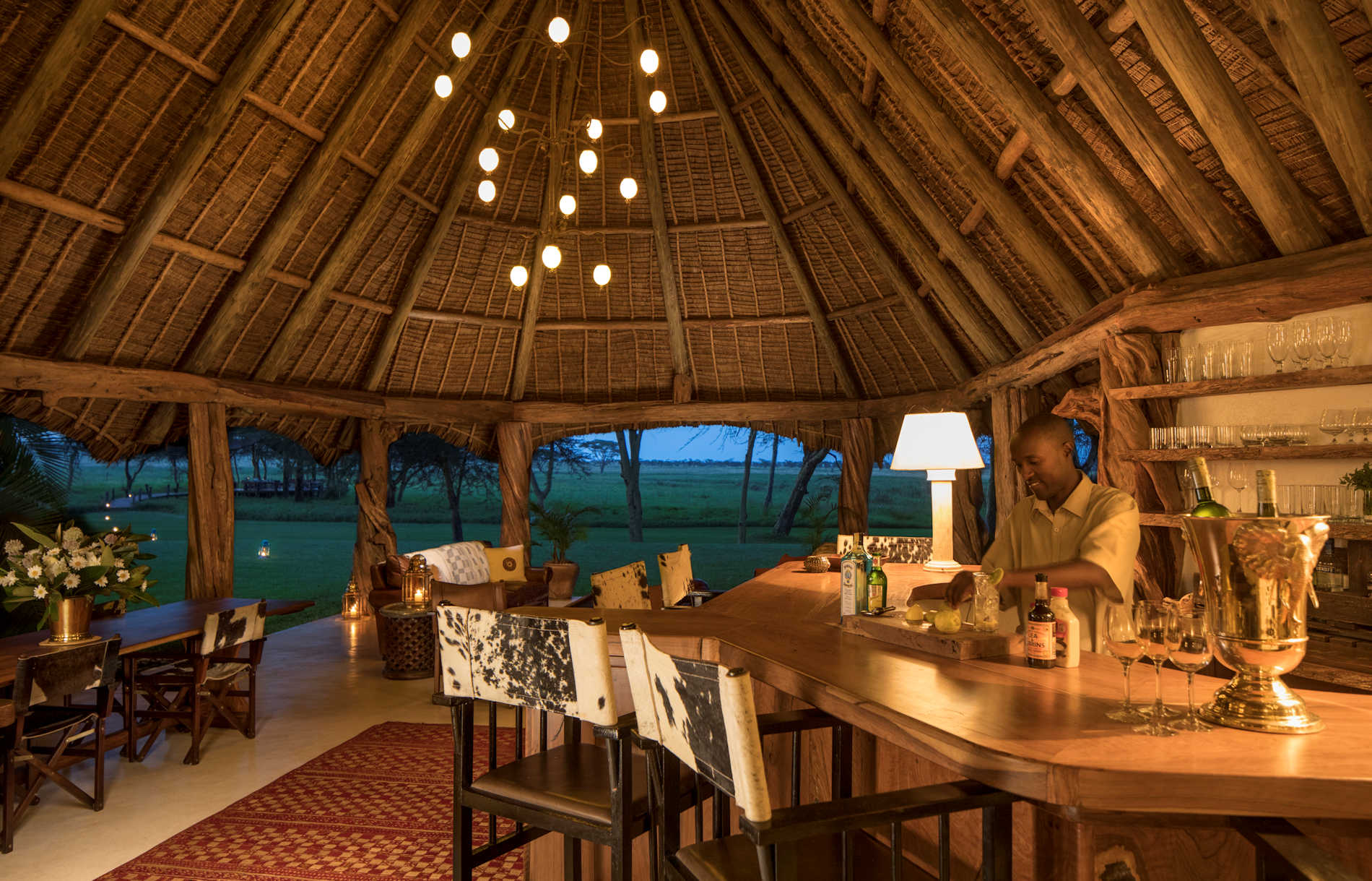 Eine sehr gut ausgestattete Bar ist immer geöffnet, mit einigen geschickten Barkeepern, die Ihnen einen Cocktail Ihrer Wahl mixen. Vor dem Lounge-Bereich befindet sich eine große, schattige Terrasse, auf der man perfekt frühstücken und zu Mittag essen kann, während das Abendessen an einem lodernden Lagerfeuer stattfindet. Ein großer Infinity-Pool mit vielen bequemen Liegen liegt gegenüber der Wasserstelle. Im Shop gibt es eine große Auswahl an Kuriositäten und stilvoller Kleidung, Schmuck und Kunstwerken zu kaufen.