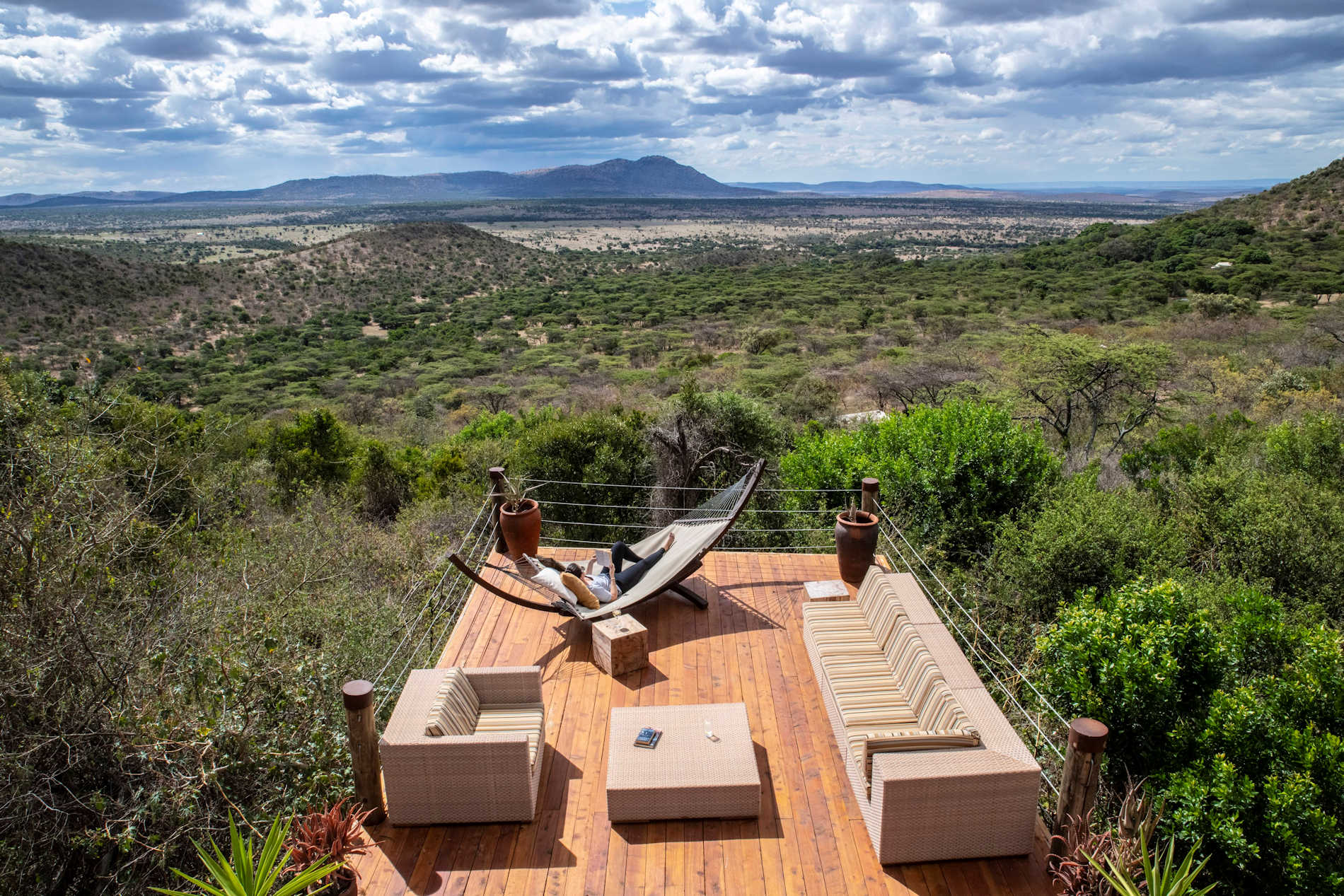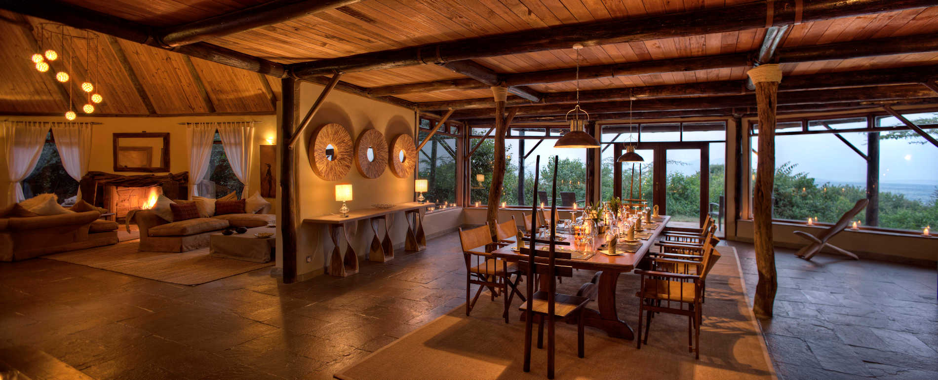 Cottar’s Bush Villa bietet einen atemberaubenden Blick auf die Savannenebenen, durch die die große jährliche Gnuwanderung führt, und liegt inmitten der Olderkesi Hills.