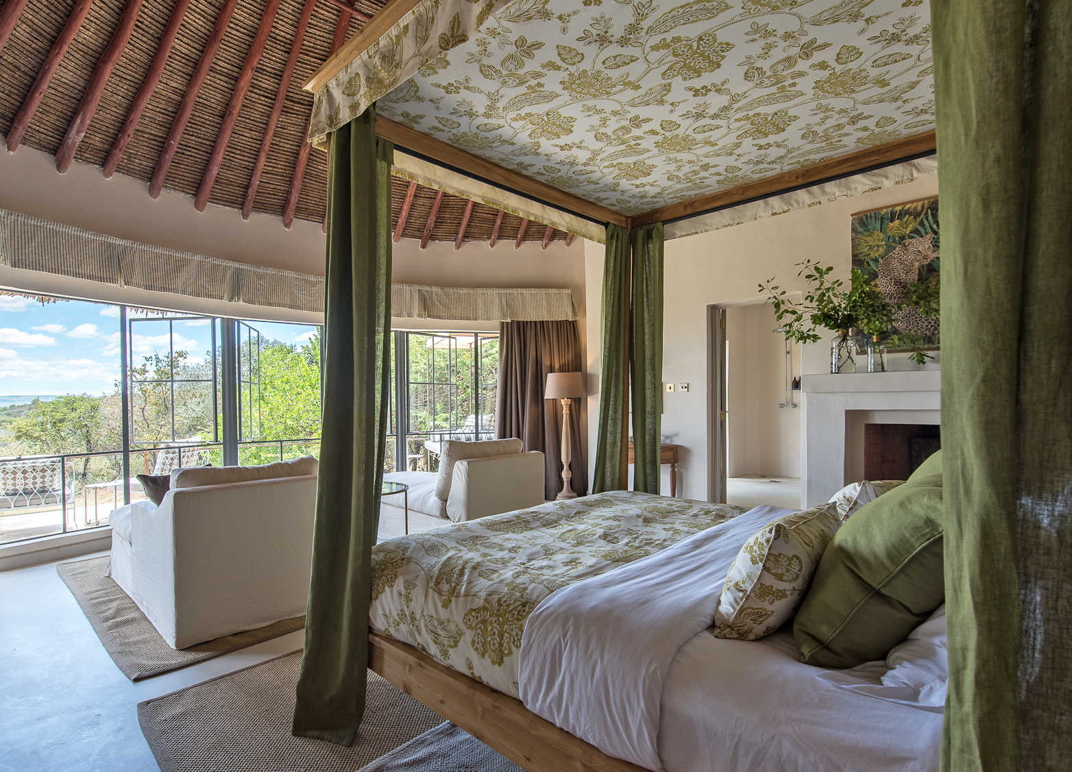 Auf einem Hügel befinden sich acht Steinhäuser, jedes mit einem weiten Blick auf die Laikipia-Landschaft. Ein großes Haupthaus mit offenem Kaminfeuer lädt die Gäste zu entspannenden Cocktails und köstlichen Mahlzeiten ein, die aus einer kreativen Speisekarte mit Zutaten aus dem eigenen Gemüsegarten zubereitet werden. Ein Infinity-Pool bietet schöne schattige Plätze und einen lässigen Essbereich im Freien, während ein Wasserloch vor dem Mugie House eine Vielzahl von Wildtieren anlockt und ein Versteck für Begegnungen aus nächster Nähe sorgt.